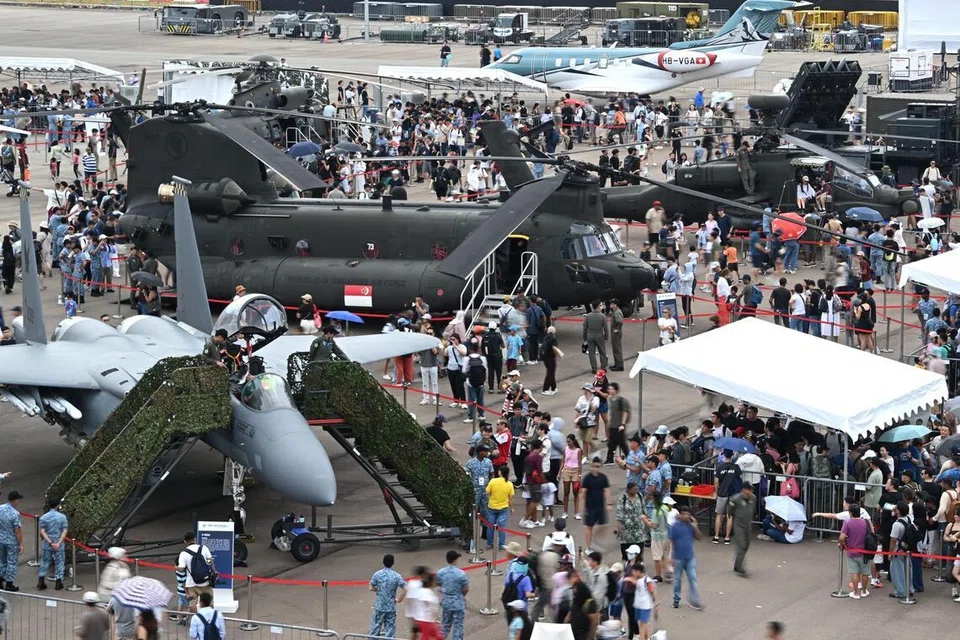 சிங்கப்பூரில் நடைபெறும் விமானக் கண்காட்சியில் மக்கள் பெருந்திரளாகக் குவிந்தனர்.