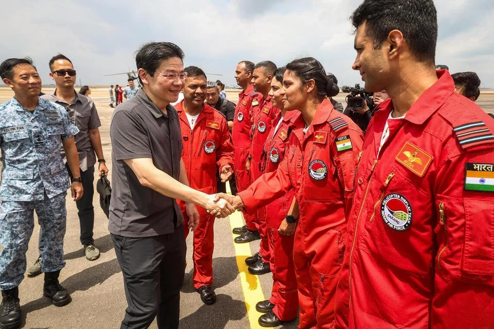 இந்திய விமானப் படை ஹெலிகாப்டர் சாகசக் குழுவைச் சந்தித்த பிரதமர் லாரன்ஸ் வோங்.
