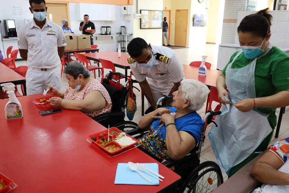 கடந்த வெள்ளிக்கிழமை (பிப்ரவரி 7), சொங் பாங்கில் உள்ள ஸ்ரீ நாராயண மிஷன் தாதிமை இல்லத்தில் தங்கியிருக்கும் 300 பேர், இல்ல ஊழியர்கள் அனைவருக்கும் இந்தியக் கடற்படைக் கப்பல்களின் சமையற்கலைஞர்கள் உணவு தயாரித்தனர். மிகுந்த கவனத்துடன் சைவ உணவை அவர்கள் தயாரித்ததாகக் கூறப்பட்டது.