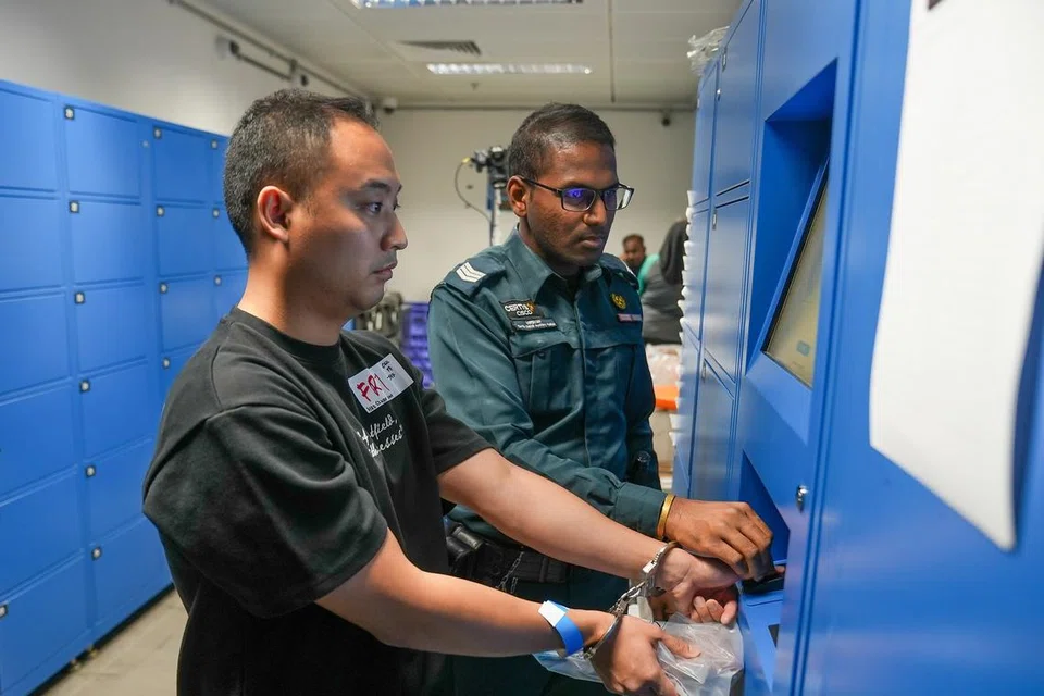 முழுவதுமாகக் கண்காணிப்புக் கருவிகளுடன், வெளிநபர்கள் நுழைய முடியாத இப்பகுதியில், குற்றவாளியின் திறன்பேசி, பணப்பை உள்ளிட்ட சொந்தப் பொருள்கள், எளிதில் சேதமுறாத நெகிழிப் பைகளுக்குள் அடைக்கப்பட்டு, அவரது விரல்ரேகையால் மட்டுமே திறக்கப்படகூடிய பாதுகாப்புப் பெட்டகத்தில் வைக்கப்படுகின்றன.