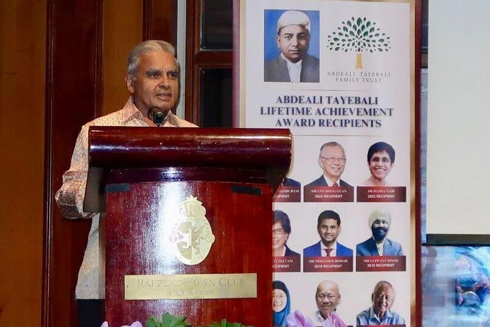 ஐக்கிய நாட்டு நிறுவனத்திற்கான சிங்கப்பூரின் முன்னாள் தூதர் பேராசிரியர் கிஷோர் மஹ்புபானி புதன்கிழமை (ஜனவரி 28) அப்தேயலி தய்யிபலி வாழ்நாள் சாதனையாளர் விருது வழங்கிச் சிறப்பிக்கப்பட்டார்.