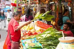 அதிலும் குறிப்பாக, கேம்பல் லேன் சாலையில் திரும்பிய பக்கமெல்லாம் மக்கள் ஒருவருக்கொருவர் பொங்கல் வாழ்த்துகளைப் பரிமாறிக்கொள்வது, பரபரப்பிலும் வேண்டிய பொருள்களைப் பொறுமையாகப் பார்த்து வாங்குவது என பொங்கல் களைகட்டிவிட்டதைக் காண முடிந்தது.