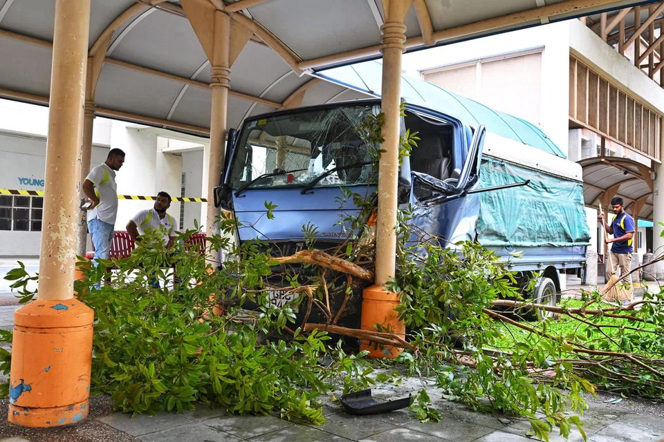 தெம்பனிஸ் வட்டாரத்தில் லாரி ஒன்று மரத்தில் மோதி நடைபாதை மீது ஏறியது.