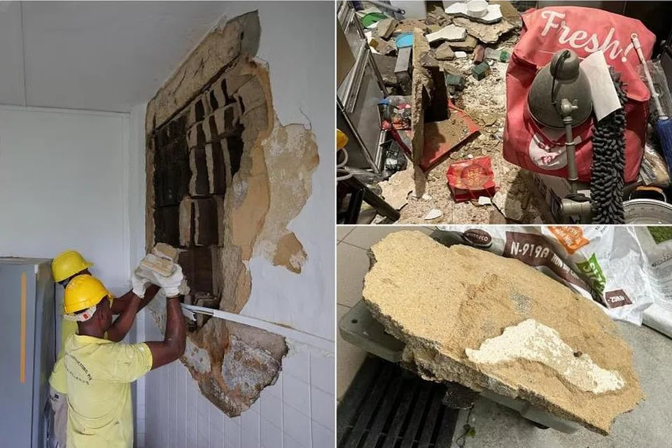 அந்த நேரத்தில் வசிப்பறையில் இருந்த திரு லீ சமையலறைக்கு விரைந்துசென்றபோது, சுவரில் பெரிய ஓட்டை இருந்ததையும் தரையில் பெரிய கான்கிரீட் துண்டுகள், இடிபாடுகள் இருந்ததையும் கண்டார்.