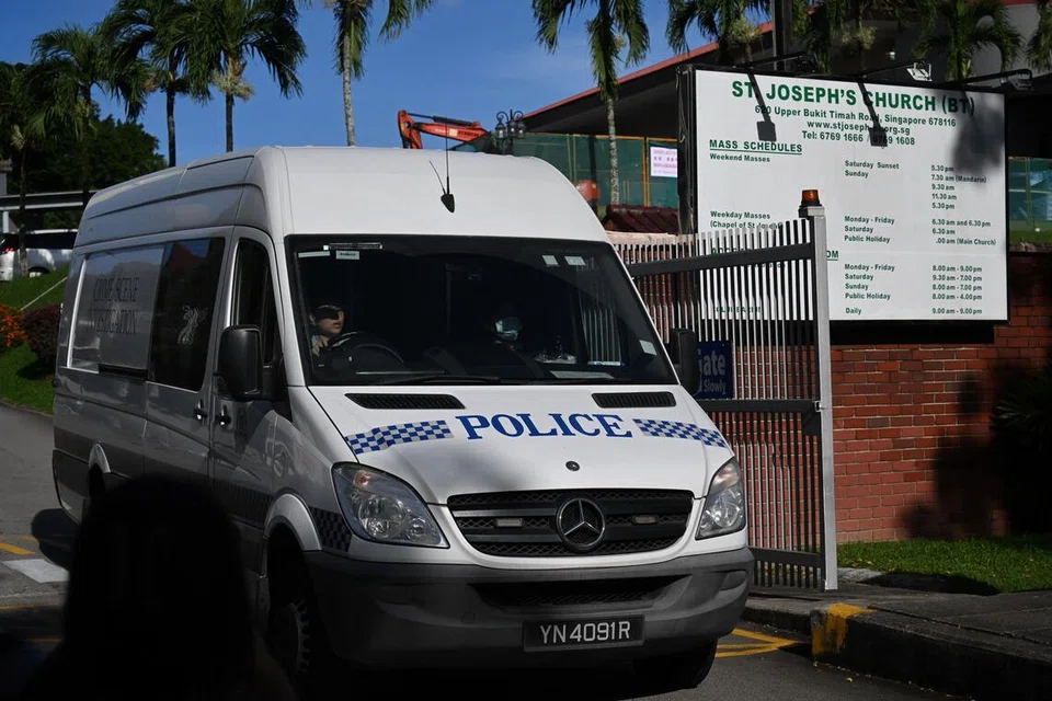 செயிண்டி ஜோசப் தேவாலயப் பகுதியைத் தவிர்க்கும்படி அதிகாரிகள் மக்களை அறிவுறுத்தினர். - படம்: ஸ்ட்ரெய்ட்ஸ் டைம்ஸ்