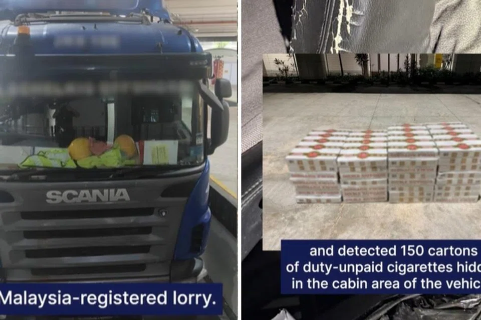 அந்த ஆடவர், 150 பெட்டிகளில் இருந்த வரி செலுத்தப்படாத சிகரெட்டுகளை மலேசியாவில் பதிவு செய்யப்பட்ட லாரியில் மறைத்துக் கொண்டுவர முயன்றார்.