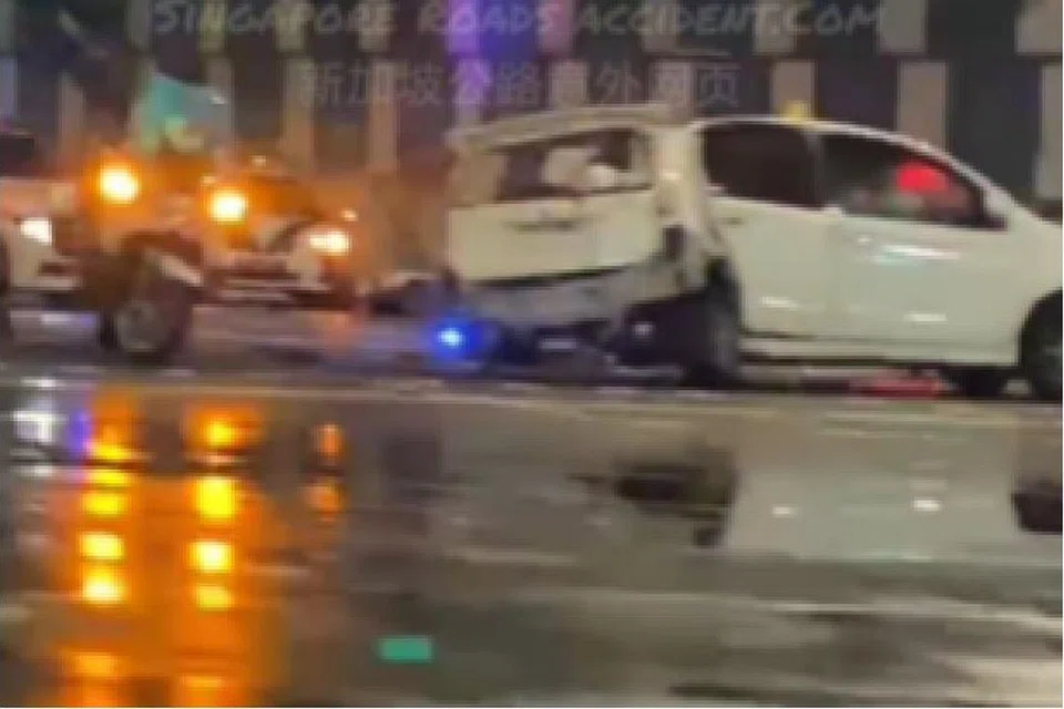 Singapore roads accident.com ஃபேஸ்புக் பக்கத்தில் பதிவேற்றம் செய்யப்பட்ட படங்கள், வெறிச்சோடி கிடந்த சாலையின் நடுவே வெள்ளை நிற கார் ஒன்று மோசமாக சேதமுற்று இருந்ததைக் காட்டின.