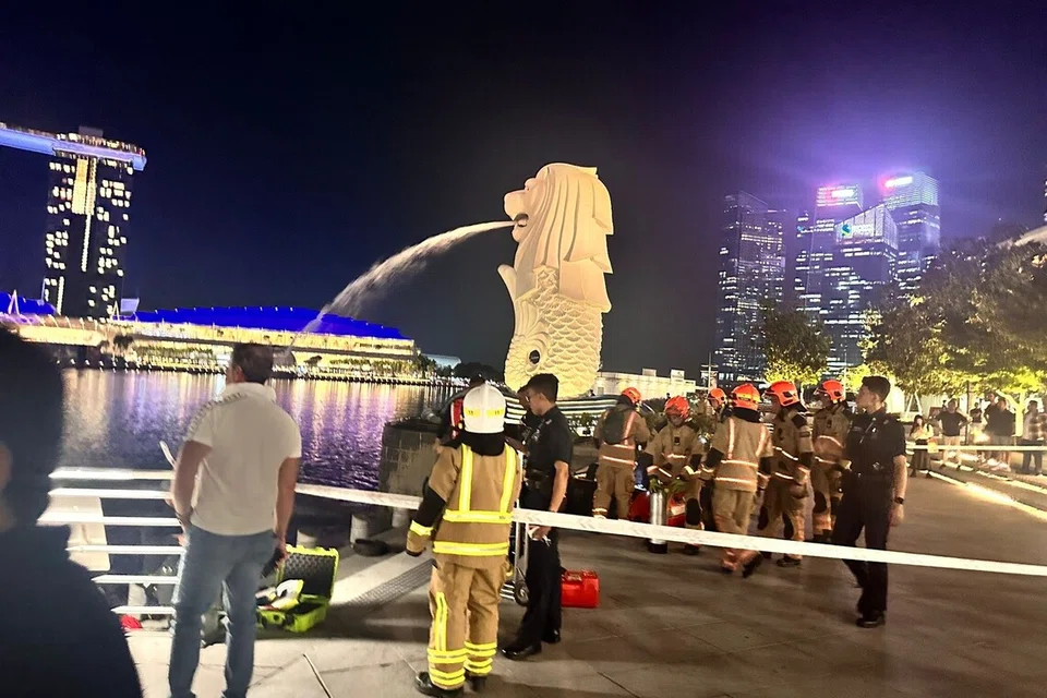 “திடீரென்று அவசர மீட்புப் படகுடன் மெர்லயன் சிலை அருகே இருக்கும் படிகள் வழி குடிமைத் தற்காப்புப் படை அதிகாரிகள் இறங்கிக் கொண்டிருந்தார்கள். அந்தப் பகுதி வழியாக மக்கள் நடக்காமல் இருக்க வேகமாகத் தடுப்புகள் போடப்பட்டன.