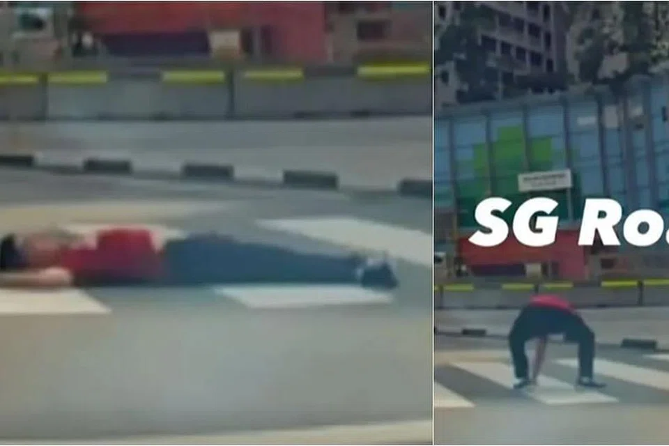 அந்த ஆடவர் சாலையின் 'ஸீப்ரா கிராசிங்'கில் படுத்துக்கிடப்பதைக் கண்டதும் கார் ஓட்டுநர் வாகனத்தை நிறுத்தினார். அப்போதிலிருந்து ஏறக்குறைய 13 வினாடிகளுக்கு அந்த ஆடவர் ஒன்றுமே தெரியாததுபோல தொடர்ந்து சாலையில் படுத்துக்கிடந்தார்.