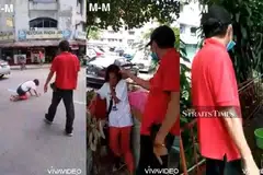 படுத்துக்கிடந்த ஆடவர், எழுந்து நின்று 'ஏஎம்கே ஹப்' கடைத்தொகுதியை நோக்கி சர்வ சாதாரணமாக நடக்கத் தொடங்கினார்.