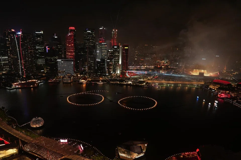 மரினா பேயில் நடைபெற்ற தேசிய தினக் கொண்டாட்டங்களை முதல்முறையாக ரசித்தனர் சகோதரிகள் லேக்கா, வேணி.