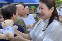 நடப்பில் உள்ள நாடாளுமன்ற உறுப்பினர்கள் குடியிருப்பாளர்களிடம் குமாரி லீயை அறிமுகம் செய்துவருகின்றனர்.
