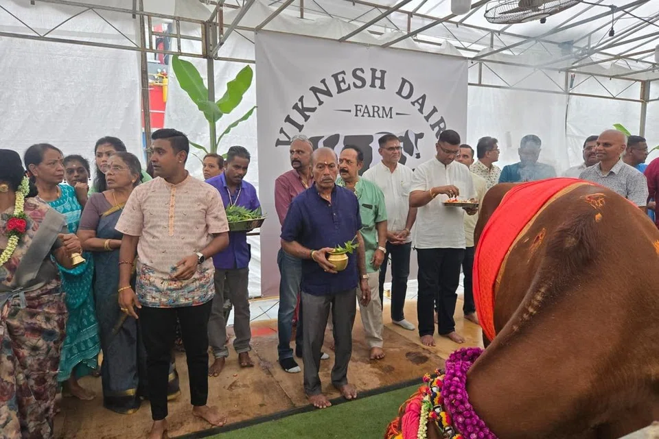 “அவற்றை அலங்கரித்து, வழிபட்டு, பொங்கல் ஊட்டிக் கொண்டாடுகிறோம்,” என்றார் விக்னேஷ் பால்பண்ணையின் உரிமையாளர் சுப்பிரமணியம்.