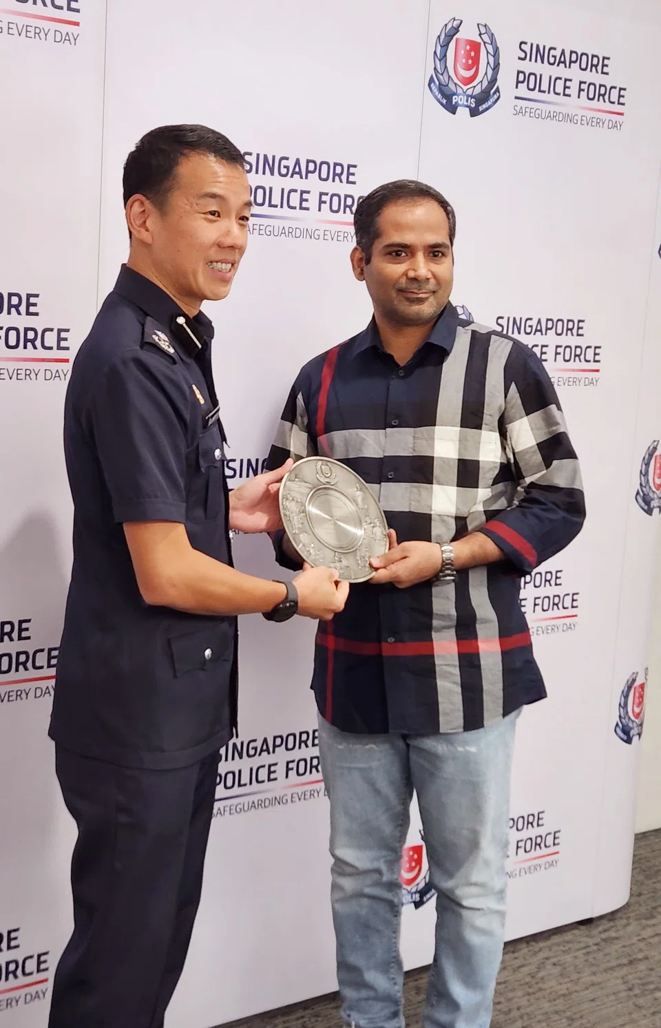 ஈசூன் ரிங் ரோட்டில் அமைந்துள்ள வீடமைப்பு வளர்ச்சிக் கழக (வீவக) குடியிருப்புச் சுவரின் விளிம்பில் அமர்ந்தபடி காணப்பட்ட முதியவர் ஒருவரை துரிதமாகச் செயல்பட்டு பாதுகாப்பாக மீட்கக் காவல்துறைக்கு உதவியதற்காக இவ்விருது வழங்கப்பட்டது.