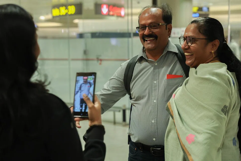 கடல்சார் தொழில்துறை ஊழியரான இவரை வரவேற்க இவரின் மனைவி, தாயார், மகன் ஆகியோர் சாங்கி விமான நிலையத்தில் அதிகாலைமுதல் காத்திருந்தனர்.