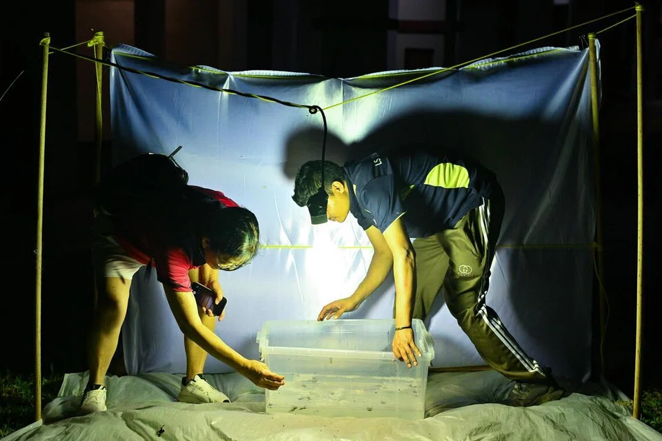 தெம்பனிஸ் சங்காட் தொகுதி நாடாளுமன்ற உறுப்பினர் டெஸ்மண்ட் சூ தலைமையிலான பணிக்குழு, ஏப்ரல் 10ஆம் தேதி முதல் கிட்டத்தட்ட ஒவ்வோர் இரவும் ஒளிப்பொறிகளை வைத்து இந்தப் பூச்சிகளைப் பிடித்து வருகிறது.