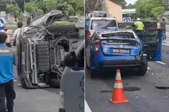 39 வயது ஓட்டுநரும் 19 வயது பின்னிருக்கைப் பயணியும் மருத்துவமனைக்குக் கொண்டு செல்லப்படும்போது சுயநினைவுடன் இருந்ததாகக் காவல்துறை கூறியது.