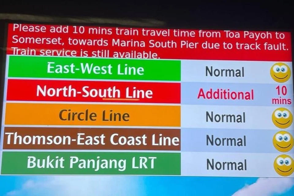 செவ்வாய்க்கிழமை காலை கிட்டத்தட்ட 9.05 மணிக்கு வடக்கு-தெற்கு தடத்தில் பயணம் செய்வோர் தோ பாயோ, சாமர்செட் நிலையங்களுக்கு இடையே, மரினா சவுத் நிலையம் நோக்கிச் செல்வோர் தங்களது பயண நேரத்தில் கூடுதலாக 10 நிமிடங்களைச் சேர்த்துக்கொள்ளும்படி அறிவுறுத்தப்பட்டனர்.