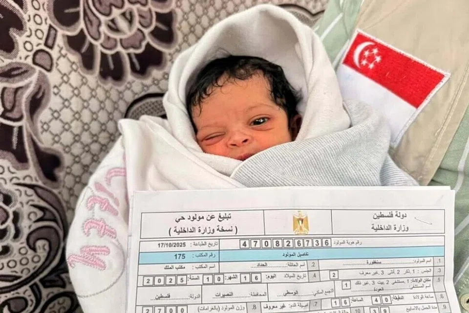 காஸாவில் பிறந்த பாலஸ்தீனப் பெண் குழந்தைக்கு ‘சிங்கப்பூர்’ எனப் பெயர் சூட்டப்பட்டுள்ளது.
