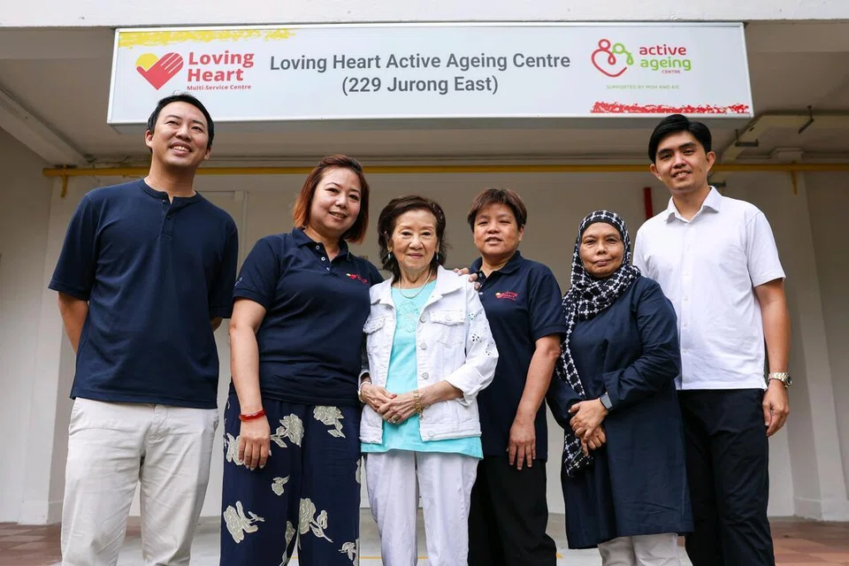 லவ்விங் ஹார்ட் பல்நோக்கு சேவை மையத்தின் அதிகாரிகள் மற்றும் பணியாளர்கள் ஜூரோங் ஈஸ்ட்டில் உள்ள லவ்விங் ஹார்ட் மூத்தோர் நடவடிக்கை நிலையத்தின் முன்பு 2025 டிசம்பர் 30ஆம் தேதி எடுத்துக்கொண்ட படம். - படம்: ஸ்ட்ரெய்ட்ஸ் டைம்ஸ்