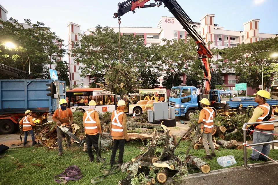மரம் ஒன்று சாலையில் விழுந்து கிடப்பதைக் காட்டும் படங்கள் சமூக ஊடகங்களில் வலம் வந்தன. அந்த மரத்துக்கு அருகே இருந்த போக்குவரத்து விளக்கு ஒன்றும் சேதமுற்றது.