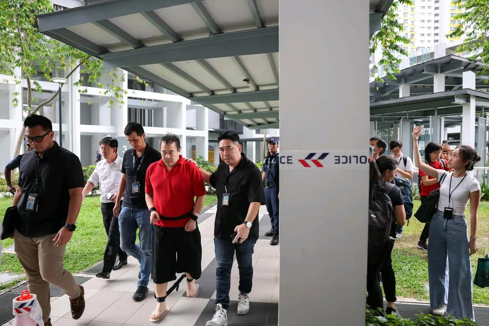 தோ சீ ஹோங், 50, எனப்படும் அவர் கிளமெண்டி அவென்யூ 4வில் உள்ள புளோக் 311சி-க்குக் காலை 10.20 மணியளவில் கொண்டு செல்லப்பட்டபோது ஐந்து காவல்துறை அதிகாரிகள் அவரைச் சூழ்ந்து காணப்பட்டனர்.