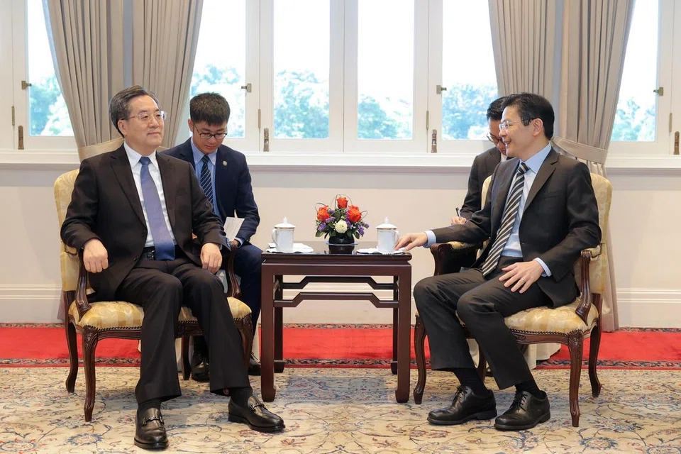 சிங்கப்பூருக்கு இரண்டு நாள் பயணமாக வந்துள்ள சீனத் துணைப் பிரதமர் டிங் சூசியாங், நவம்பர் 11ஆம் தேதி அன்று அதிபர் தர்மன் சண்முகரத்தினம், பிரதமரும் நிதி அமைச்சருமான லாரன்ஸ் வோங் ஆகியோரைத் தனித்தனியாகச் சந்தித்துப் பேசினார்.