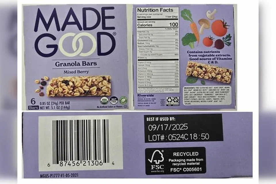 இதுதொடர்பாக டிசம்பர் 13ஆம் தேதி வெளியிட்ட அறிக்கையில், “அமெரிக்க உணவு மற்றும் மருந்து நிர்வாகம் வெளியிட்ட எச்சரிக்கையைத் தொடர்ந்து ‘மேட்குட் கிரானோலா பார்’ மீட்டுக்கொள்ளப்பட்டது. அதற்கான நடவடிக்கைகளில் அதிகாரிகள் ஈடுபட்டு வருகின்றனர்,” எனச் சிங்கப்பூர் உணவு அமைப்புத் தெரிவித்தது.