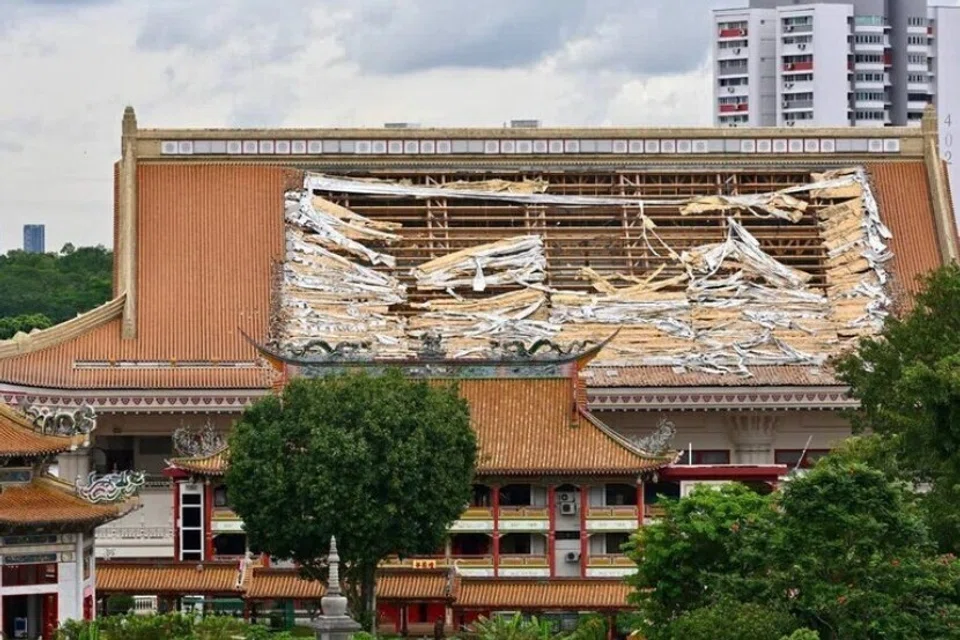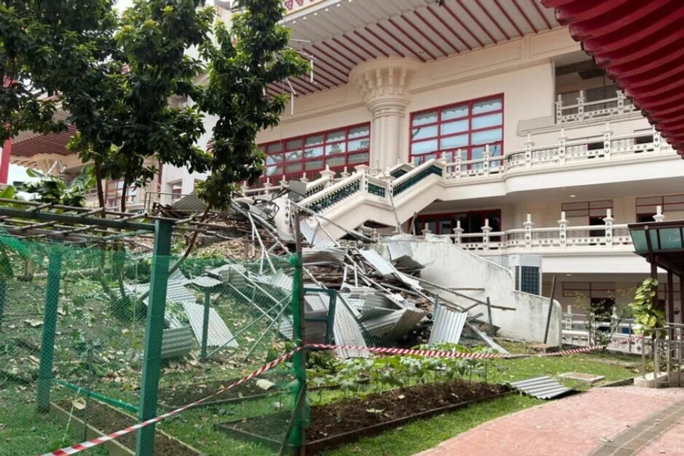மடாலயத்தில் இருக்கும் வணக்கத்திற்குரிய ஹொங் சூன் நினைவு மண்டபத்தின் கூரைப் பகுதிகளும் துணைக்கூரைச் சட்டமும் சரிந்து விழுந்ததாகக் கட்டட, கட்டுமான ஆணையத்தின் பேச்சாளர் தெரிவித்தார்.