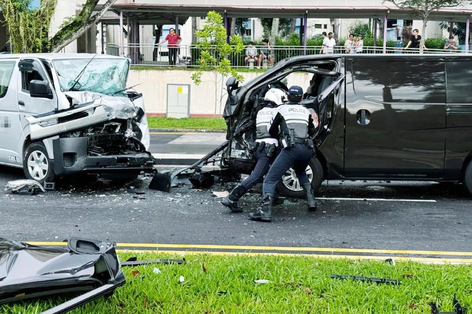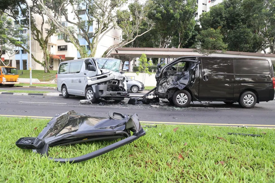 சம்பவ இடத்திற்கு விரைந்த குடிமைத் தற்காப்புப் படையினர், வேன் ஓட்டுநர் ஒருவர் தமது இருக்கையிலிருந்து நகர முடியாதபடி மாட்டிக்கொண்டிருந்ததைக் கண்டனர்.