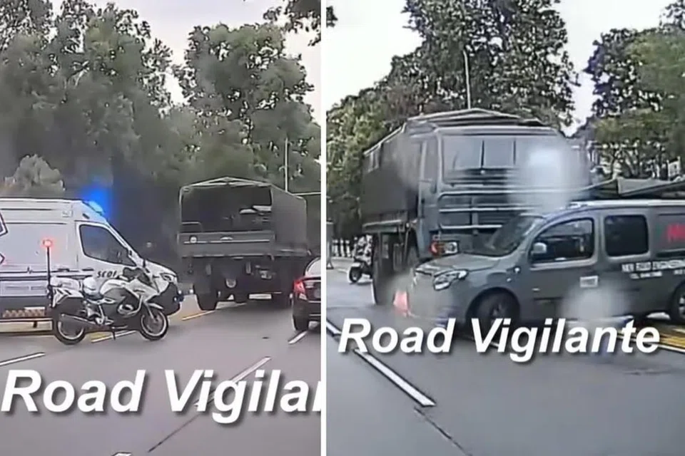 அதில் ஐந்து டன் எடை கொண்ட சிங்கப்பூர் ஆயுதப் படை வாகனம் ஒன்று சாலையின் நடுவே நிறுத்தப்பட்டிருப்பதையும் மருத்துவ அவசர உதவி வாகனம் ஒன்று அவ்விடத்தில் இருப்பதையும் காண முடிந்தது.