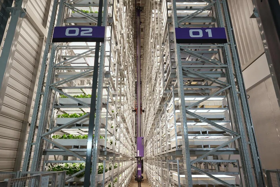 இரண்டு ஹெக்டர் பரப்பளவில் மண்ணின்றி நீரில் (hydroponic) கீரைகளை வளர்க்கும் பண்ணை முழுக்க முழுக்க தானியக்க முறையில் செயல்படுகிறது.