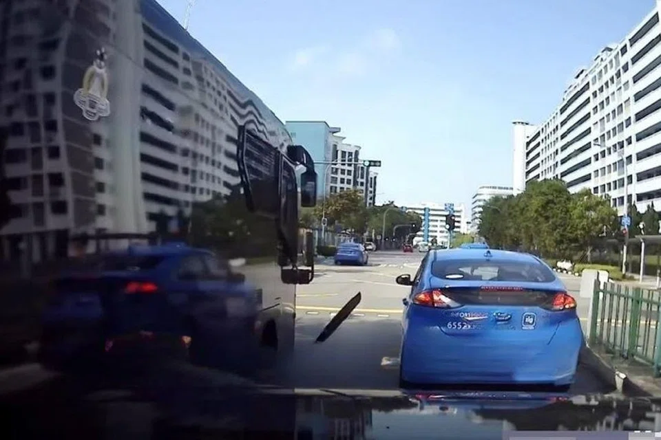 மோதலால் பொருள் ஒன்று பறந்து சாலையில் விழுவதைக் காணொளியில் பார்க்க முடிந்தது. - படம்: SG Road Vigilante