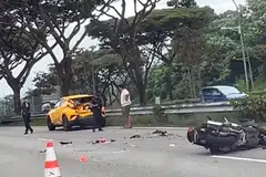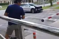 மோதலால் பொருள் ஒன்று சாலை மீது விழுவதையும் ‘எஸ்ஜி ரோடு விஜிலான்டே’ (SG Road Vigilante) ஃபேஸ்புக் பக்கத்தில் பதிவேற்றம் செய்யப்பட்ட காணொளியில் பார்க்க முடிந்தது.