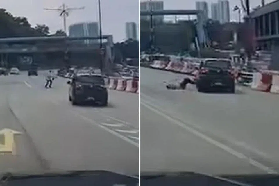 சமூக ஊடகங்ளில் வெளியான காணொளியில் அந்த ஆடவர் பாதசாரிகளுக்கான சாலைக் கடப்பு இல்லாத இடத்தில் சாலையைக் கடப்பது தெரிகிறது. அவருக்குச் சற்று அருகிலேயே நடை மேம்பாலம் ஒன்று இருப்பதும் காணொளியில் பதிவாகியுள்ளது.