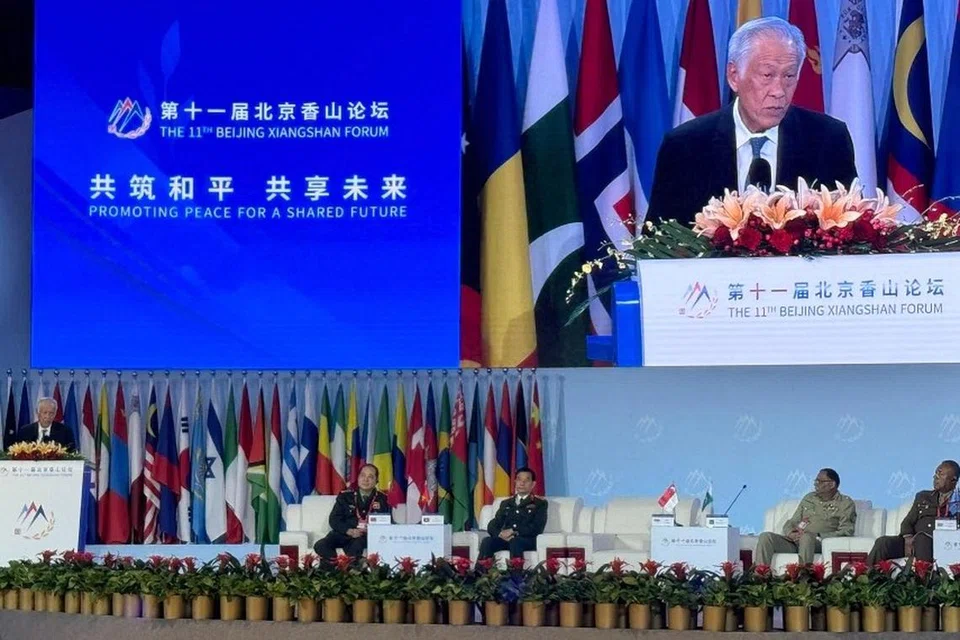 பெய்ஜிங்கில் நடைபெற்ற 11வது சியாங்ஷான் கருத்தரங்கில் தற்காப்பு அமைச்சர் இங் எங் ஹென் உரையாற்றினார். - படம்: சிங்கப்பூர் தற்காப்பு அமைச்சு