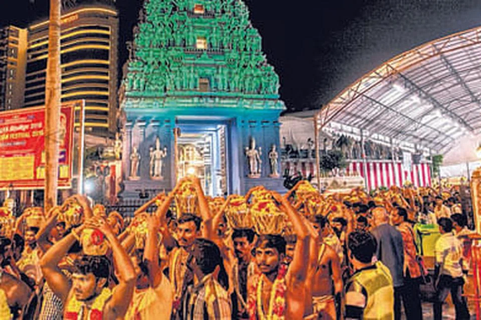 கடந்த ஆண்டு தைப்பூசத் திருவிழாவின்போது ஸ்ரீ ஸ்ரீநிவாசப் பெருமாள் கோயிலிலிருந்து பால்குடம் ஏந்திய பக்தர்கள் பெரும் திரளாக வெளியேறுகின்றனர். படம்: த. கவி