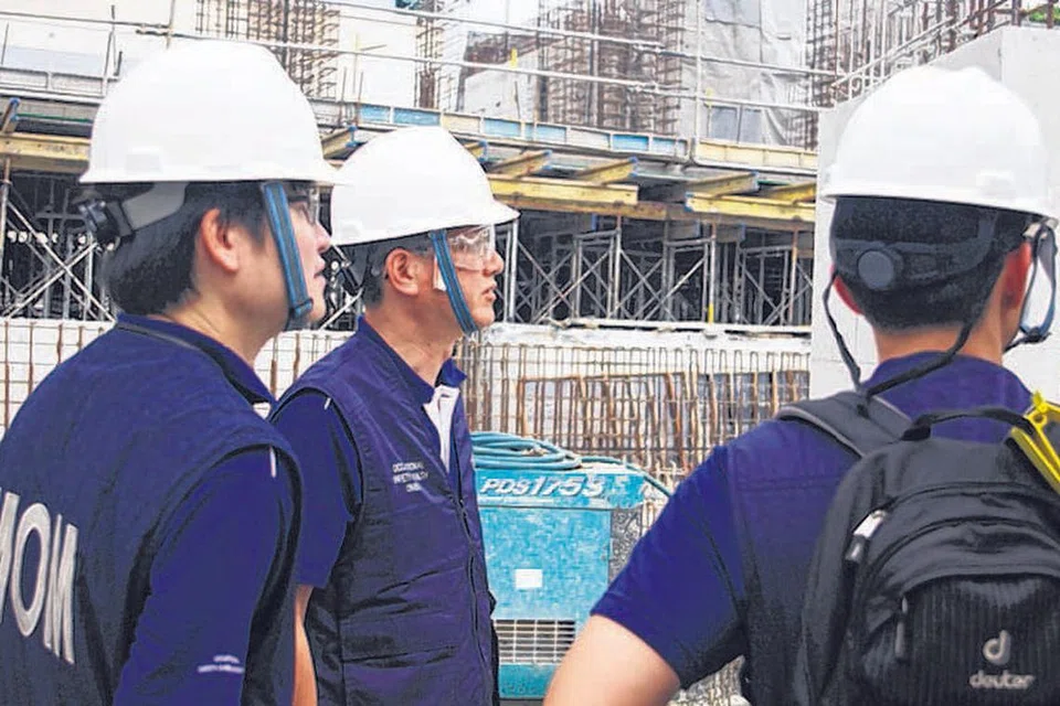 சிராங்கூன் பகுதியில் பாதுகாப்புக் குளறுபடிகளை நேரடியாகக் கண்டறியும் அரசு அதிகாரிகள். படம்: மனிதவள அமைச்சு