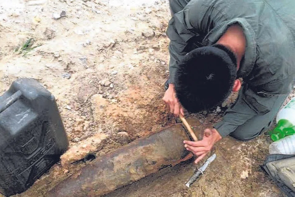 போர்க்கால எச்சமெனச் சந்தேகிக்கப்படும் எறிபடை ஒன்றை செயலிழக்க வைக்கும் பணியில் சிங்கப்பூர் ஆயுதப் படை வீரர். படம்: சிங்கப்பூர் ராணுவத்தின் 'ஃபேஸ்புக்' பக்கம்