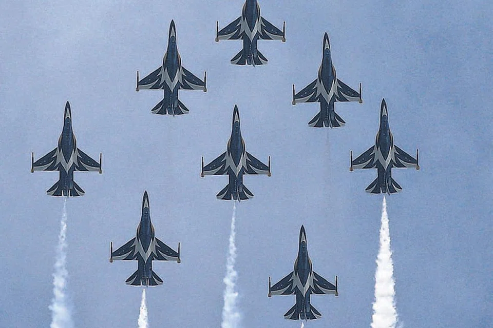 தென் கொரிய ஆகாயப் படையின் பிளாக் ஈகிள் விமானக் குழுவின் சாகசங்களுள் ஒன்று. படம்: ராய்ட்டர்ஸ்