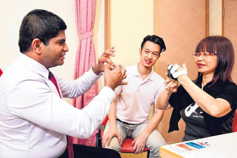 தேசிய நரம்பியல் மருத்துவக் கழகத்தின் இணைப் பேராசிரியர் நாகேந்திரன் கந்தையா (இடது) அதீத ஞாபக மறதி நோயாளியான திருவாட்டி ஜெனிஃபர் லோவைப் பரிசோதிக்கிறார். நடுவில் இருப்பவர் திருவாட்டி லோவின் புதல்வர் ஜோஷுவா லிம். படம்: ஸ்ட்ரெய்ட்ஸ் டைம்ஸ்