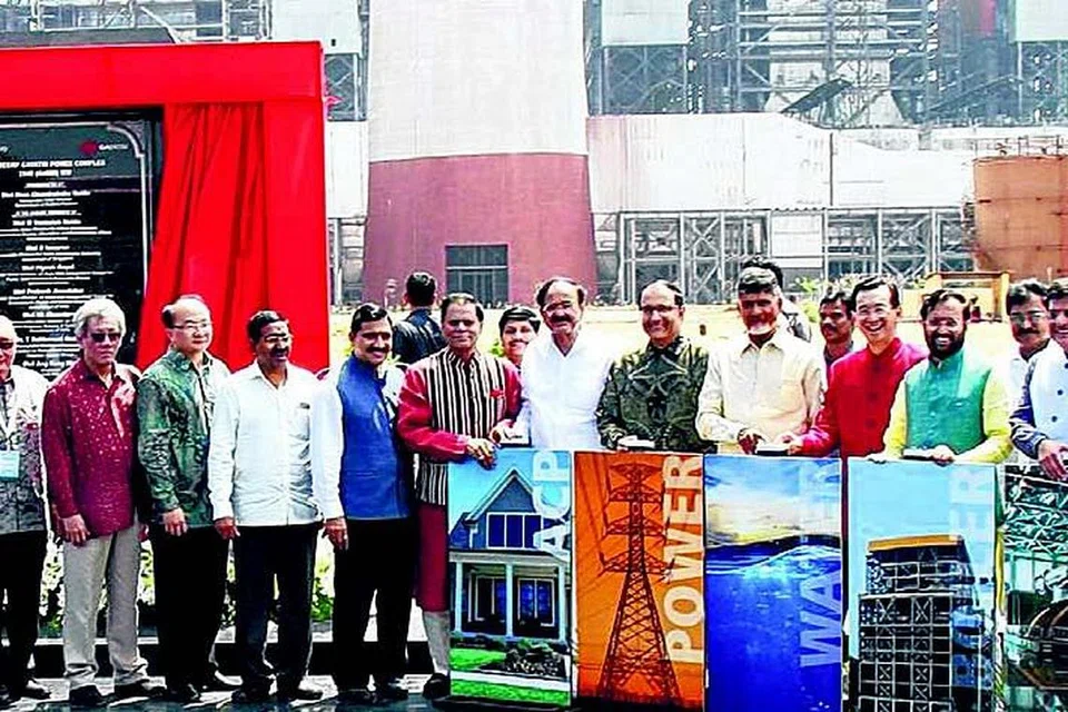 'செம்ப்கார்ப் காயத்ரி' அனல்மின் நிலையத்தைத் திறந்துவைத்த (வலமிருந்து ஆறாவது) ஆந்திர முதலமைச்சர் சந்திரபாபு நாயுடுவும் (அவருக்கு அருகில்) சிங்கப்பூர் வர்த்தக தொழில் (தொழில்) அமைச்சர் எஸ். ஈஸ்வரனும். செம்ப்கார்ப் நிறுவனத்தின் தலைவர் ஆங் கோங் ஹுவா (இடக்கோடி), உடன் அந்நிறுவனத்தின் தலைமை நிர்வாகி டேங் கின் ஃபெய் (வலமிருந்து நான்காவது) மற்றும் இந்தியாவின் மத்திய அமைச்சர்கள். படம்: செம்ப்கார்ப்