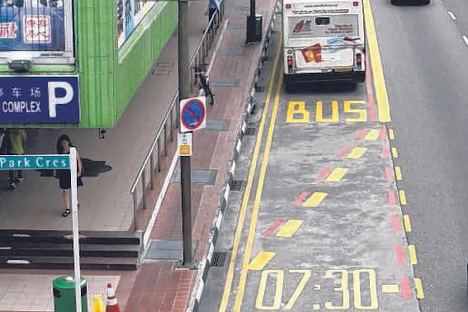 இயு தோங் சென் ஸ்திரீட்டில் உள்ள பேருந்து தடம் சிவப்புக்கோடு மூலம் அடையாளம் இடப்பட்டு உள்ளது. கோப்புப் படம்