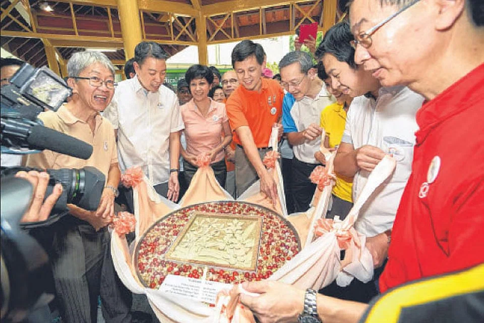 அமரர் திரு லீ குவான் இயூ, அவரது மனைவி குவா கியோக் சூ பெயர்களில் உருவாக்கப்பட்ட 'ஹைப்ரிட்' ஆர்க்கெட் மலர்கள் அருகருகே உள்ளது போன்ற மண்பாண்ட ஓவியத்தை தஞ்சோங் பகார் தொகுதியில் அத்தொகுதியின் நாடாளுமன்ற உறுப்பினர்கள் அதிகாரபூர்வமாக நேற்று திறந்து வைத்தனர். இந்த ஓவியம் தஞ்சோங் பகார் சமூக மன்றத்தின் மண்பாண்ட கலைக் குழு கைவண்ணத்தில் உருவானது. படம்: ஸ்ட்ரெய்ட்ஸ் டைம்ஸ்
