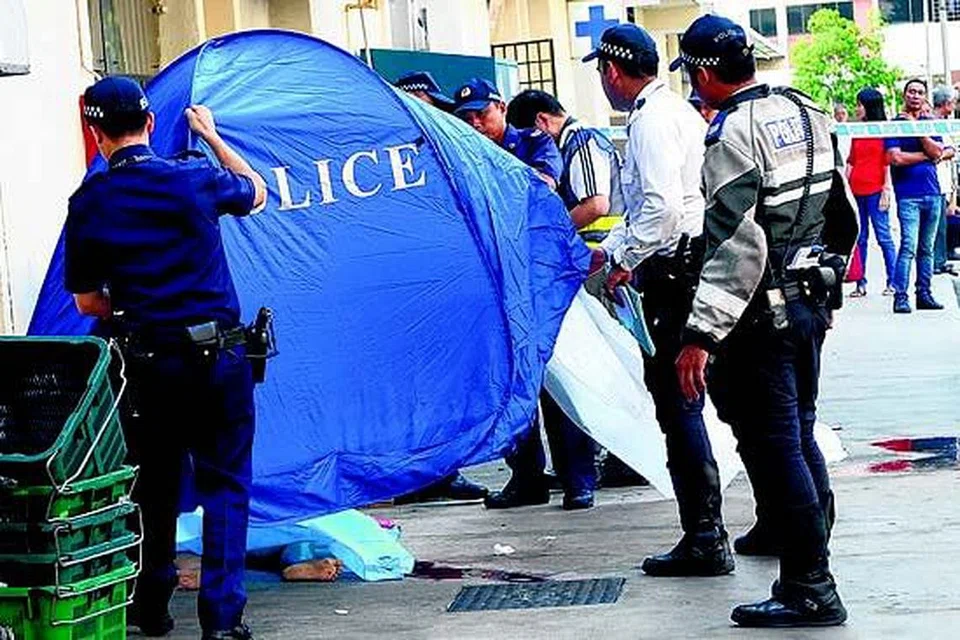 மாண்டுபோன மூதாட்டியின் சடலத்தைப் பார்வையிடும் போலிசார். படம்: தி நியூ பேப்பர்