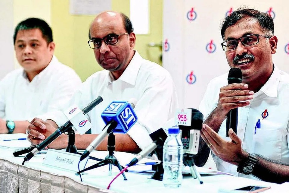 தொகுதிக்கான திட்டங்களை வெளியிடும் திரு முரளிதரன் பிள்ளையுடன் (வலது), துணைப் பிரதமர் தர்மன் சண்முகரத்னம், புக்கிட் பாத்தோக் மசெக கிளைச் செயலாளர் லியாவ் பூன் சுவீ. படம்: ஸ்ட்ரெய்ட்ஸ் டைம்ஸ்