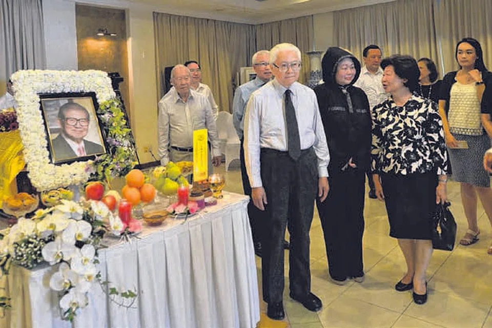 லீ அறநிறுவனத்தின் தலைவர் லீ செங் கீக்கு அதிபர் டோனி டான் கெங் யாம் இறுதி மரியாதை செலுத்தினார். படம்: எஸ்டி