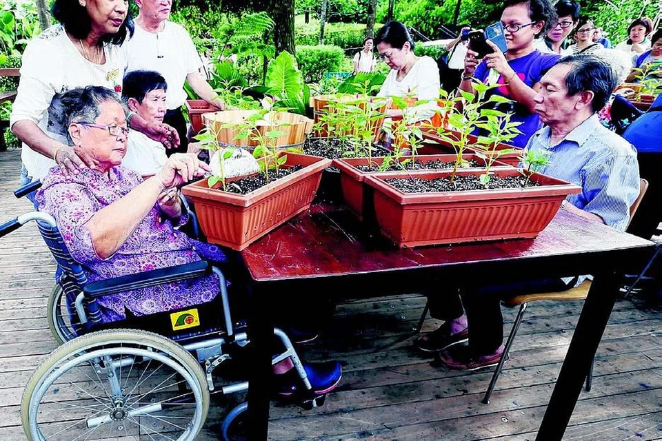 பொதுப் பூங்காவில் முதல்முறையாக அமைக்கப்பட்டிருக்கும் மனதிற்குப் புத்துணர்ச்சி அளிக்கும் தோட்டத்தில் முதியோர் உட்பட அங்கு வருபவர்களின் சிந்தையைத் தூண்டும் பல அம்சங்கள் அமைக்கப்பட்டுள்ளன. சக்கரநாற்காலி பயன்படுத்துபவர்கள் அங்கு வந்து செல்ல ஏதுவாக வசதிகள் அமைக்கப்பட்டுள்ளன. படம்: ஸ்ட்ரெய்ட்ஸ் டைம்ஸ்