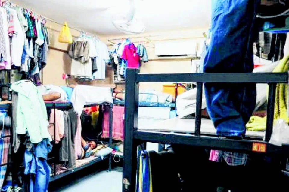 பராமரிப்பு சரியில்லாத நிலையில், நெரிசல் மிக்கதாக, அளவுக்கு அதிகமான ஊழியர்கள் தூங்குமிடம். படம்: மனிதவள அமைச்சு