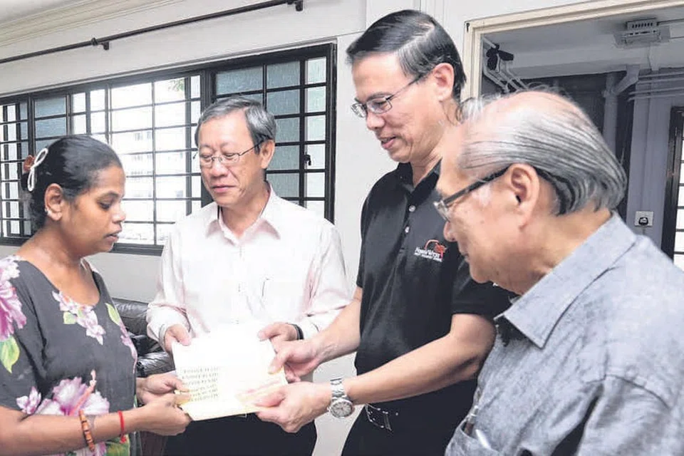 வடமேற்கு வட்டார மேயர் டாக்டர் டியோ ஹோ பின்னிடமிருந்து (வலமிருந்து இரண்டாவது) திரு ராஜேந்திரனின் சார்பாக அவருக்கான பயனீட்டுக் கட்டண உதவித் தொகையைப் பெற்றுக்கொண்டார் அவரது மனைவி திருவாட்டி அன்பழகி சந்தரசேகரன்.